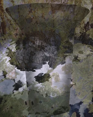 I took photographs of containers - ones of personal import - and of water surfaces at the Delaware and Raritan canal, Carnegie Lake and an indoor pool. I particularly liked the strategy of placing the horizontal water surface perpendicular to the vessel profile. The photography and the manipulations were all made digitally.